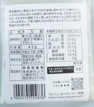 | 原材料 | 青大豆(国産)(遺伝子組み換えでない) |