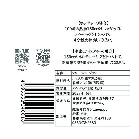 | 原材料 | 乾燥苺(国産)、ルイボス |