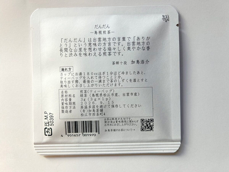 茶師十段の当店店主が島根産茶葉を厳選してブレンドしました。だんだんは出雲弁で「ありがとう」という意味で、当店のティーバッグ商品で一番人気の商品です。プチギフト、お土産、歓送迎シーズンに大活躍です。