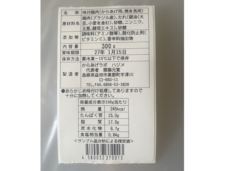 | 表示推奨項目(20品目) | 大豆, 鶏肉 |