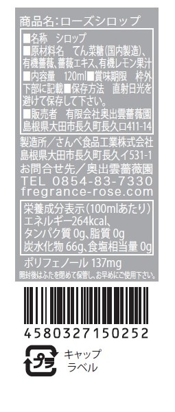 | ローズシロップ | 120ml | 24本 |