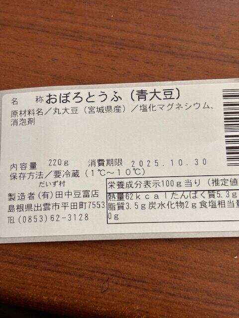| 原料の産地 | 大豆(宮城県産) |