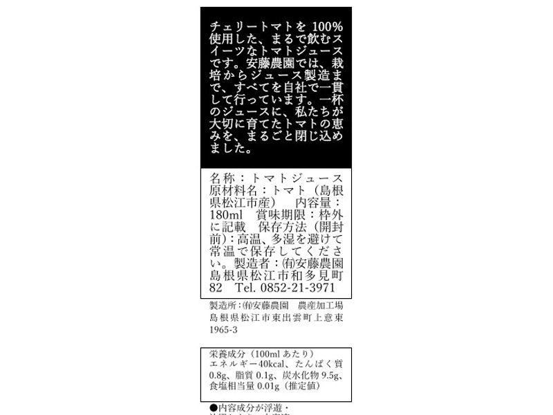 | 赤いチェリートマトジュース | 180ml | 48本 |