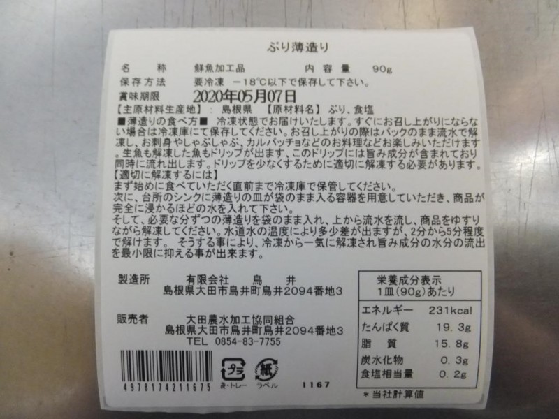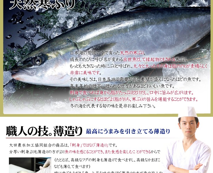 | 商品名(読み仮名) | 天然ぶり薄造り (てんねんぶりうすづくり) |