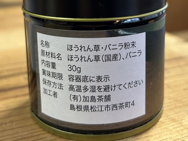 原料の産地 ほうれん草(国産)、バニラ