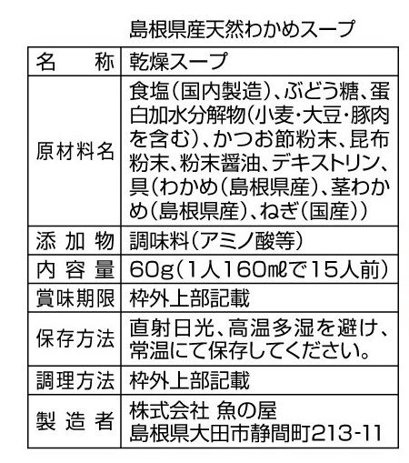 | 島根県産天然わかめスープ | 60g | 80袋 |