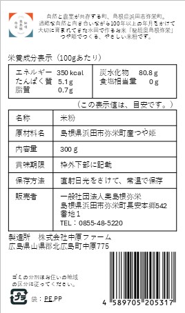 | 原材料 | 米(島根県浜田市弥栄町産つや姫) |