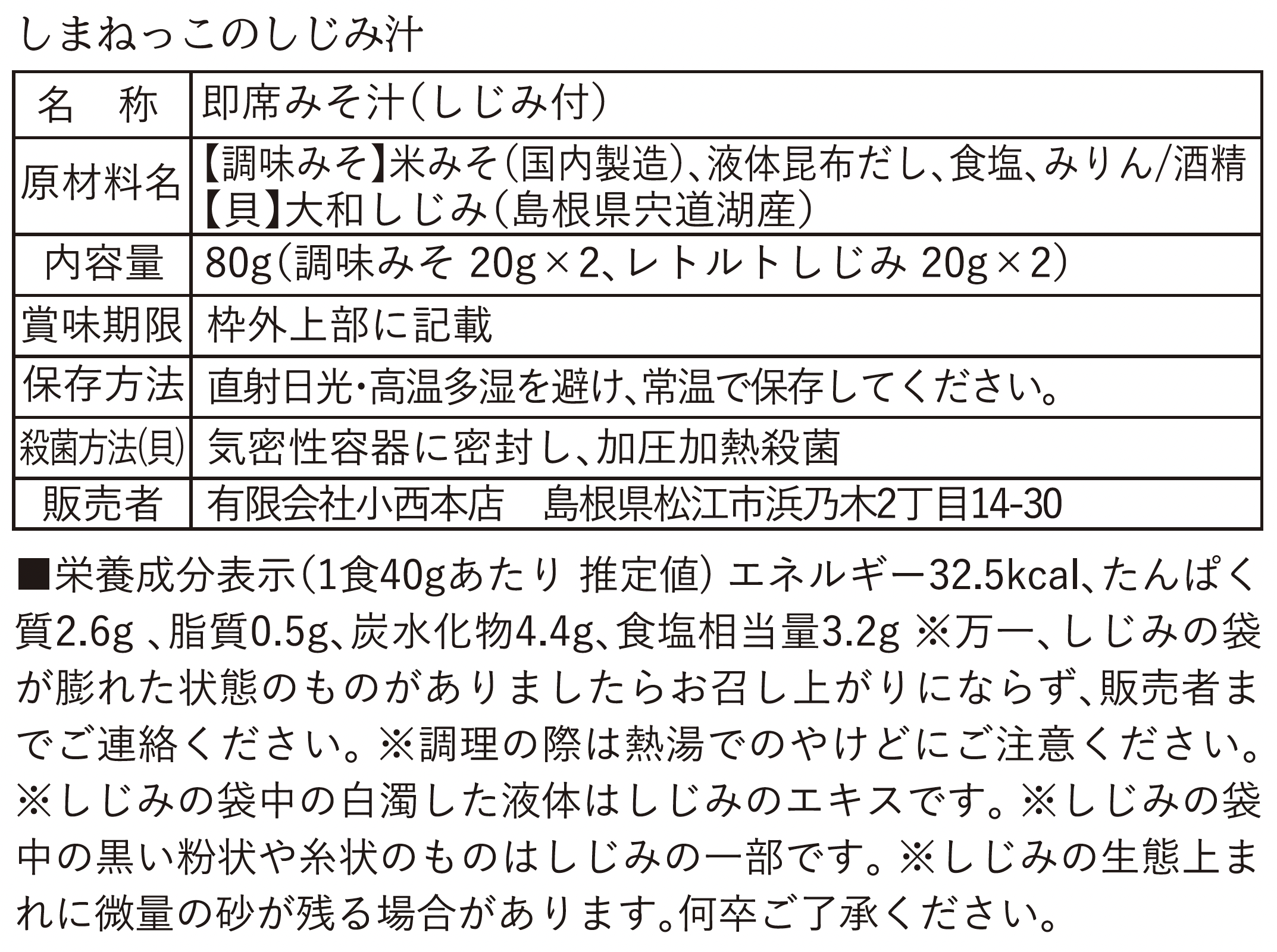| 原料の産地 | 米みそ(島根県産/小西本店製造) |