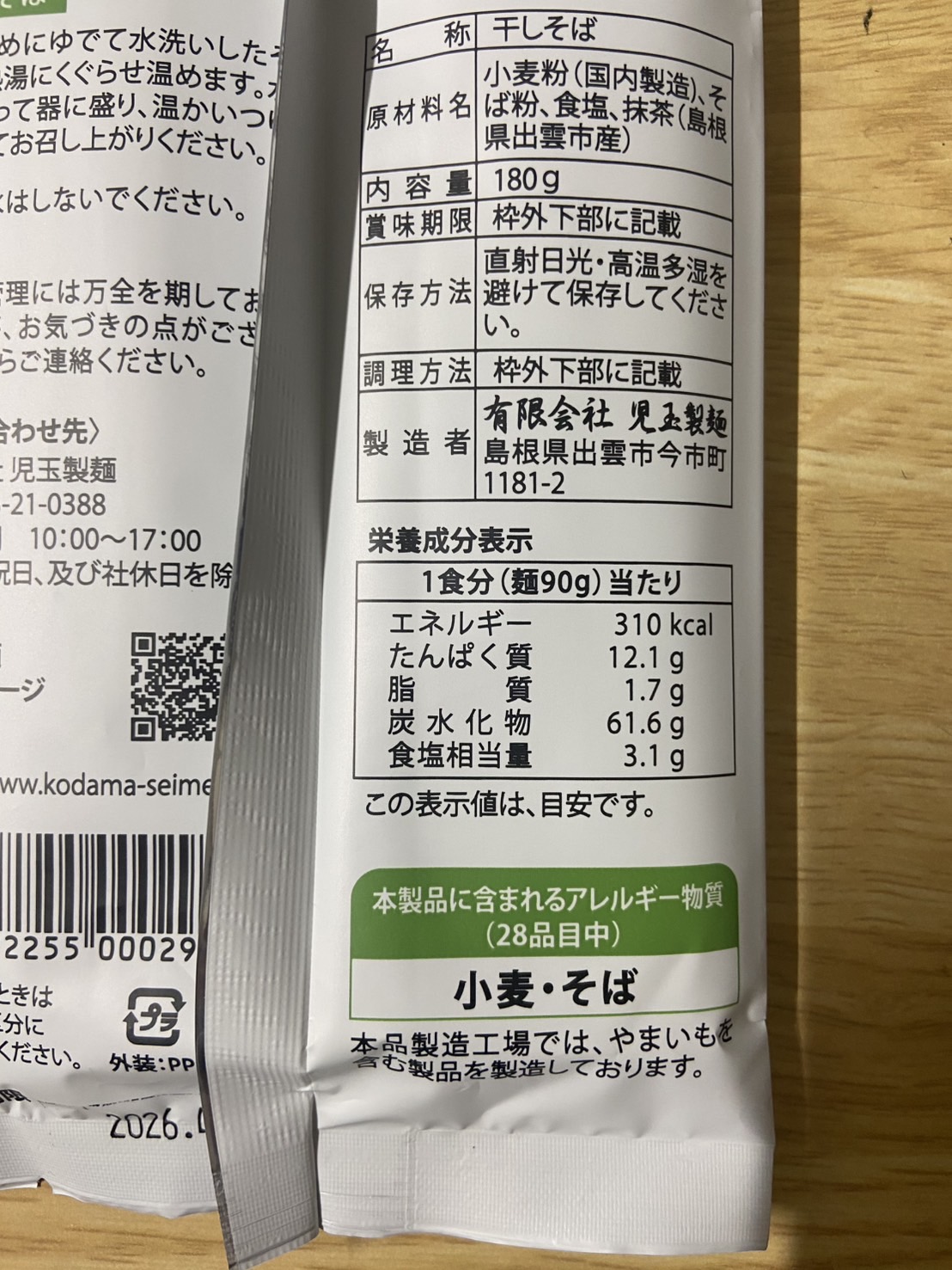 | 表示義務(8品目) | 小麦, そば |