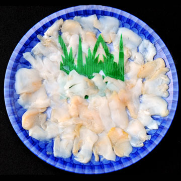 | 天然白バイ貝薄造り | 1皿 直径 22㎝ 内容量 90g (2~3人前) | 50皿 |