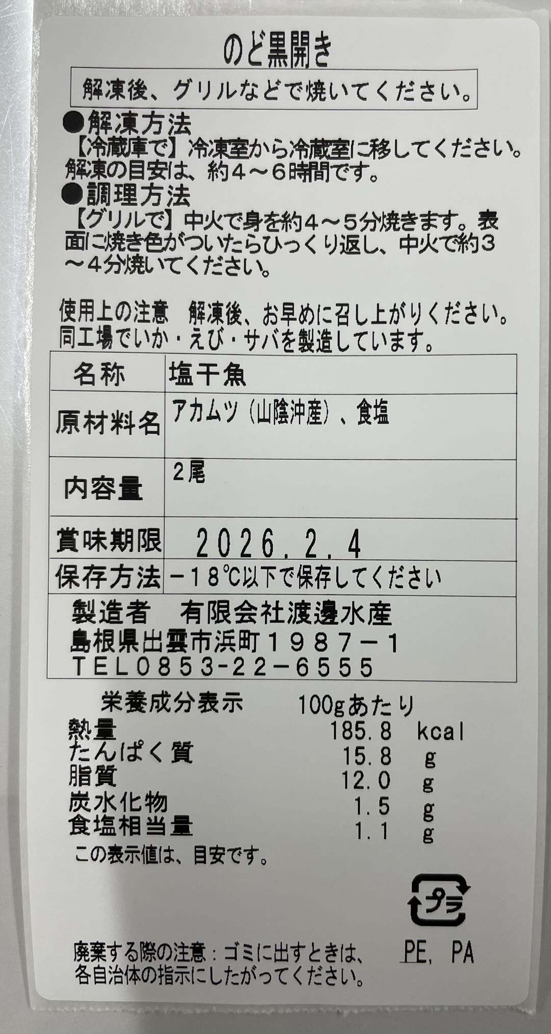 | のどぐろ開き | 中:2尾/120g | 30P |