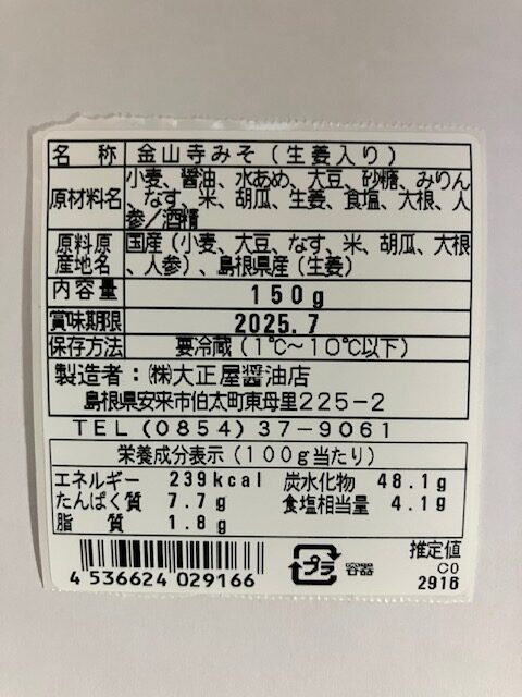 | 出西生姜金山寺みそ | 150g | 18個×2合 |