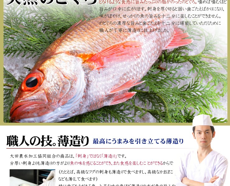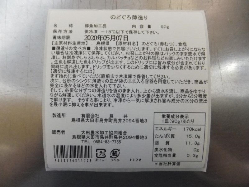 | 原料の産地 | のどぐろ(赤むつ)(島根県産) |