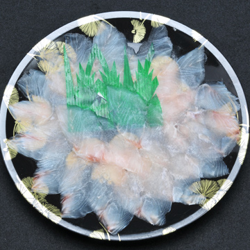 一日漁で獲れた日本海島根県産天然カナガシラを贅沢に薄造りにしました。