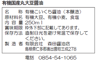 | 原材料 | 有機大豆、有機小麦、天日塩 |