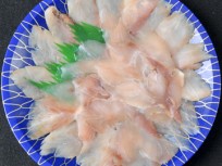 日本海産の天然アジを1つ1つ丁寧に、職人技で薄造りにしています。さっとしゃぶしゃぶして野菜、薬味と一緒にポン酢でお召し上がり下さい。その他にカルパッチョや生茶漬けや雑炊など、使い方は自由自在。