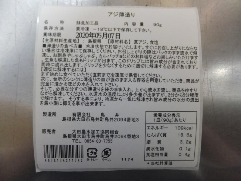 | 商品名(読み仮名) | 天然アジ薄造り (てんねんあじうすづくり) |