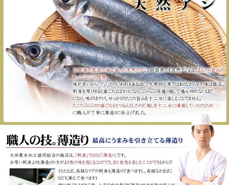 商品名(読み仮名) 天然アジ薄造り (てんねんあじうすづくり)