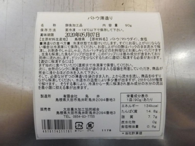 | 商品名(読み仮名) | 天然バトウ薄造り (てんねんばとううすづくり) |