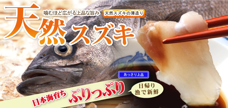 一日漁で獲れた日本海島根県産天然スズキを贅沢に薄造りにしました。
