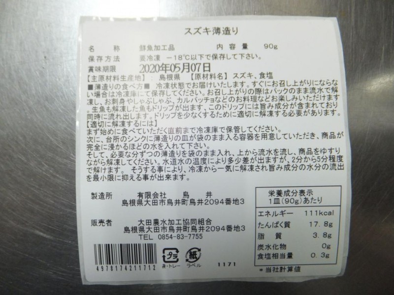 | 原料の産地 | スズキ(島根県産) |