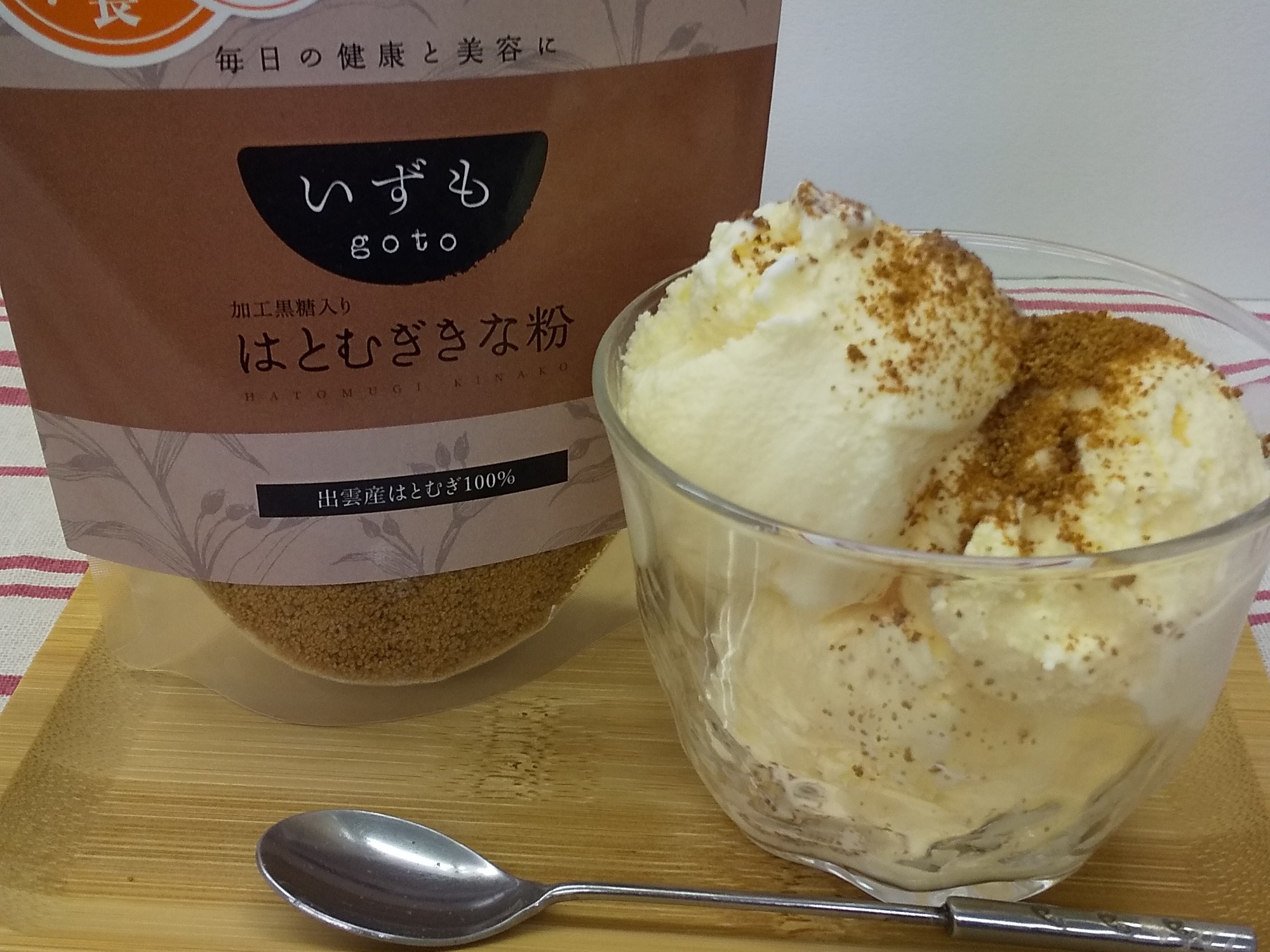 | おすすめメニュー | 育ち盛りのお子様には牛乳、健康志向の女性は豆乳に混ぜて頂くなどさまざまなシーンでお召し上がりいただけます。はとむぎきな粉に甘みがあるので、無糖のヨーグルトにかけたり、アイスのトッピングとして食べるのもお勧めです。またおはぎ(ぼたもち)のきな粉代わりにまぶすこともできます。 |