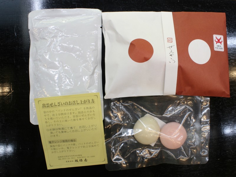 | 原材料 | 〔ぜんざい〕小豆(島根県産)、砂糖、水飴、食塩、トレハロース、グリシン |