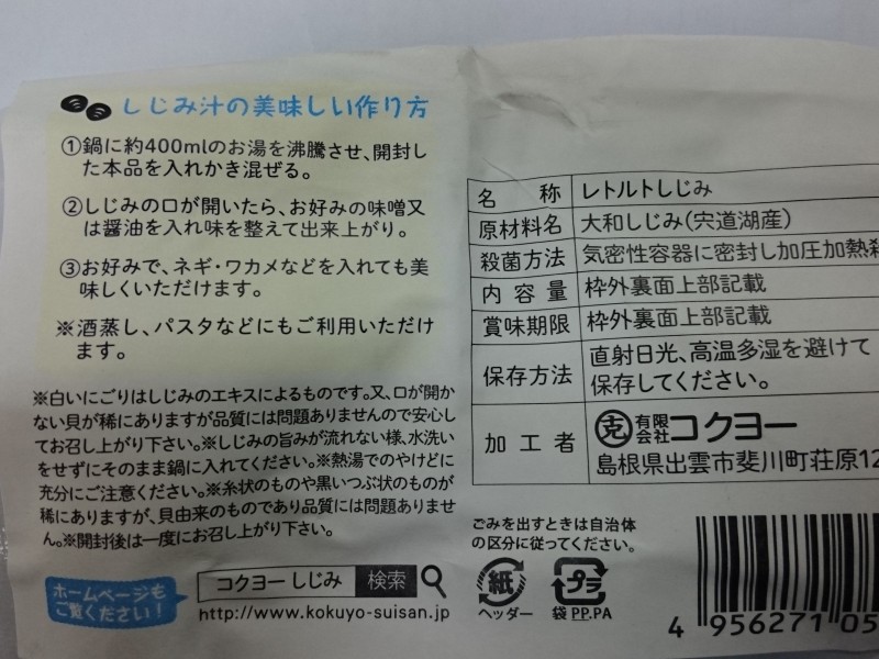 | 原料の産地 | 大和しじみ(宍道湖産) |