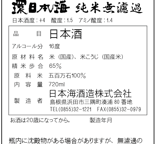 事業者名 日本海酒造株式会社 会社情報/他の登録商品を見る