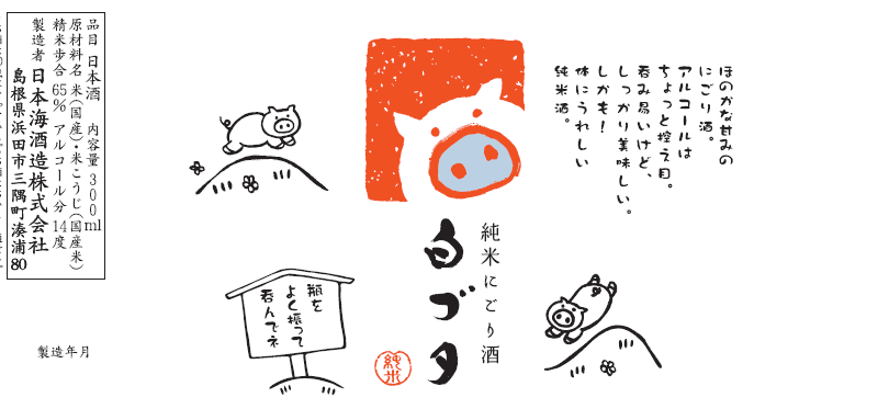 | 環日本海 純米にごり酒 白ブタ | 300ml | 12本/1ケース |