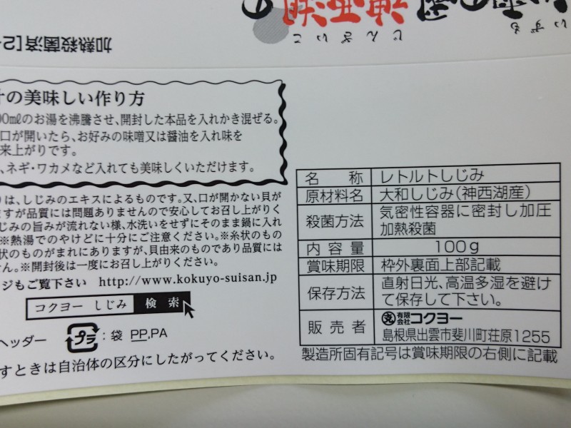 | 出雲の國 神西湖のしじみ | 100g | 30 |