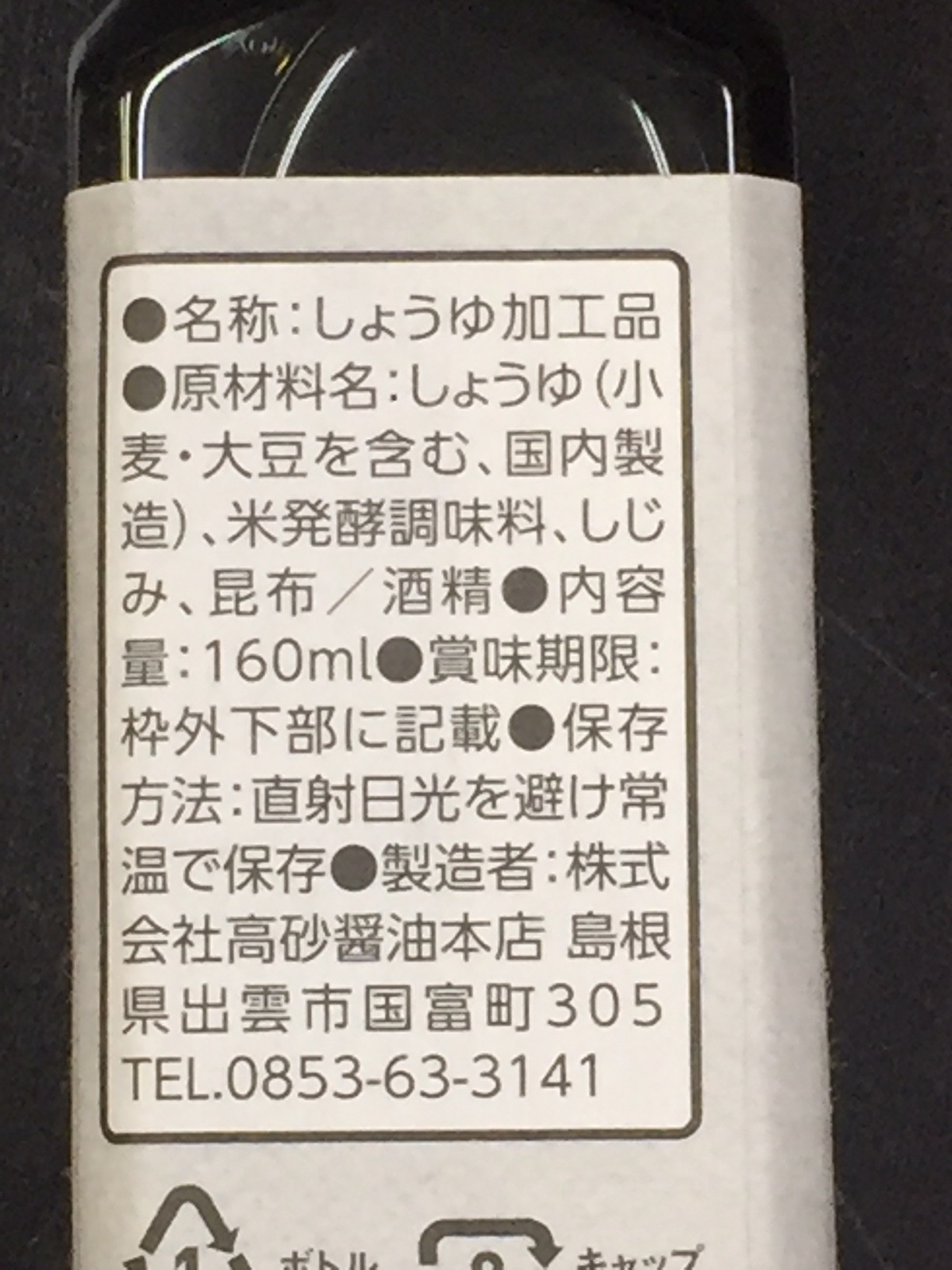 | 原料の産地 | しょうゆ(国内製造) |