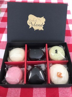 玉造名産勾玉をイメージし一口サイズの抹茶が楽しめるお菓子です。