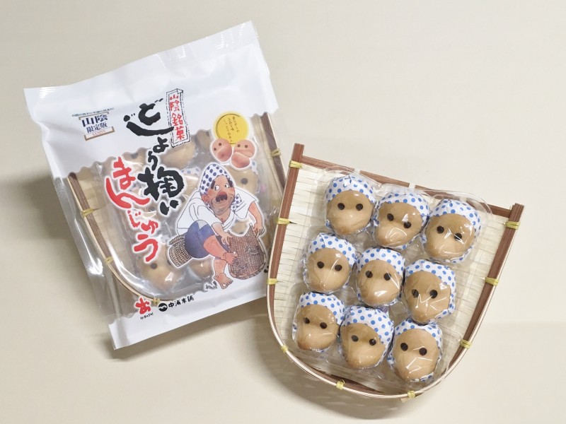 安来節に合わせて踊る「どじょう掬い踊り」に使う"ひょっとこの面"をデザインしたひょうきんで親しみを感じる山陰地方のおまんじゅうです。しっとりとした昔ながらの上品な味わいの白餡を、あっさりした生地で包み込んでいます。