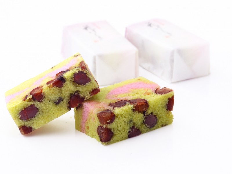 カルカン風の生地に特撰小豆を散らし、花色を加えて蒸し上げました。華やかな色合いと蒸しカステラのようなふんわりとした食感、あっさりとした味わいで松江銘菓として長年ご好評をいただいております。