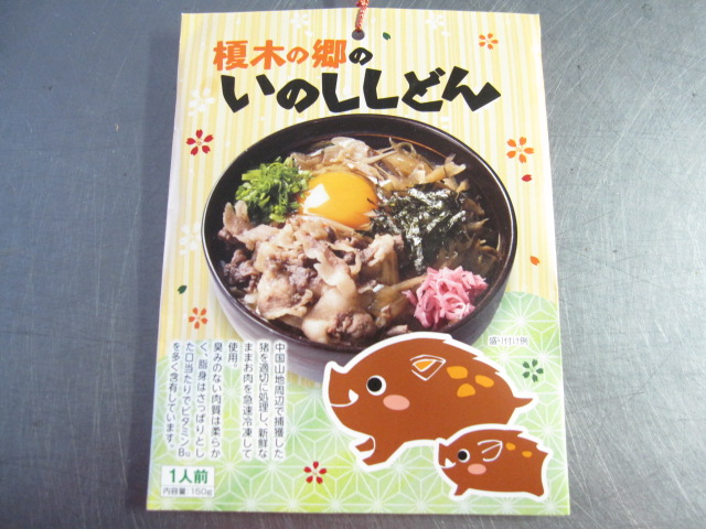 天然イノシシ肉を使用しています。新鮮な肉をミンチにしてたっぷり入れました。米は玄米を使用していますので栄養価も高く、モチモチした食感です。汁はほとんどなく、具材がたっぷりなので1袋で満腹感があります。