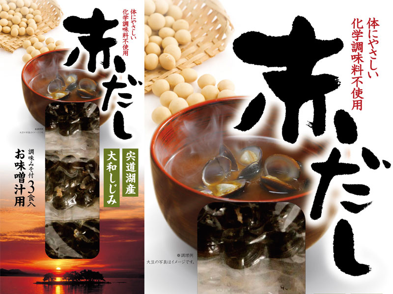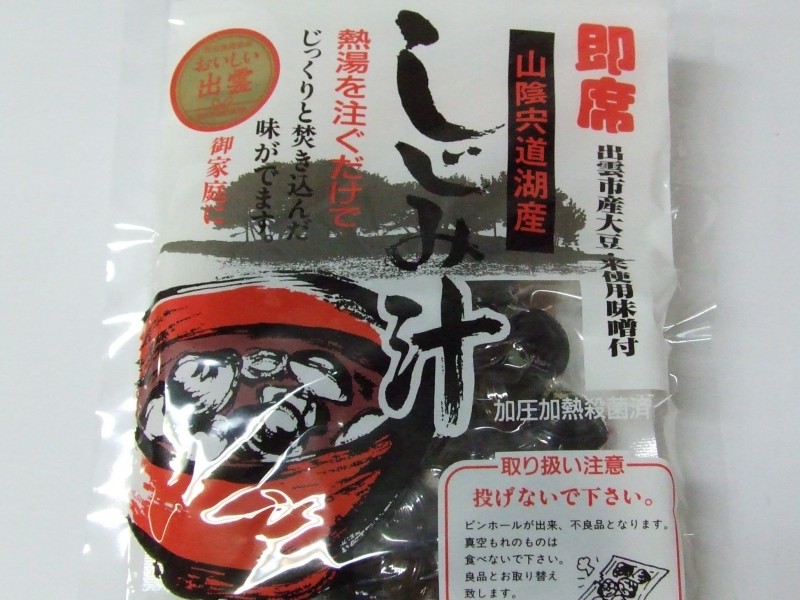 殻付きしじみ(宍道湖産)をそのままレトルトしました。調味味噌は出雲産の米と大豆で作った味噌です。