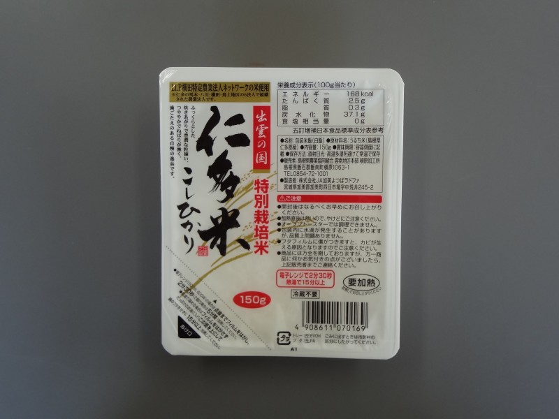 西の横綱と称され、良質米として高い評価を得ている「特別栽培・仁多米こしひかり」を使用した包装米飯(ごはん)です。