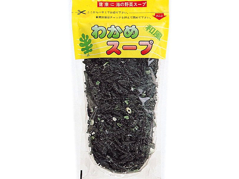 厳選された原料を使用し独自の製法でわかめの葉自体に味を施した、かつお、昆布、野菜エキスを使用した本格和風テイストのわかめスープです。お湯を注ぐだけで手軽にわかめスープの出来上がりです。